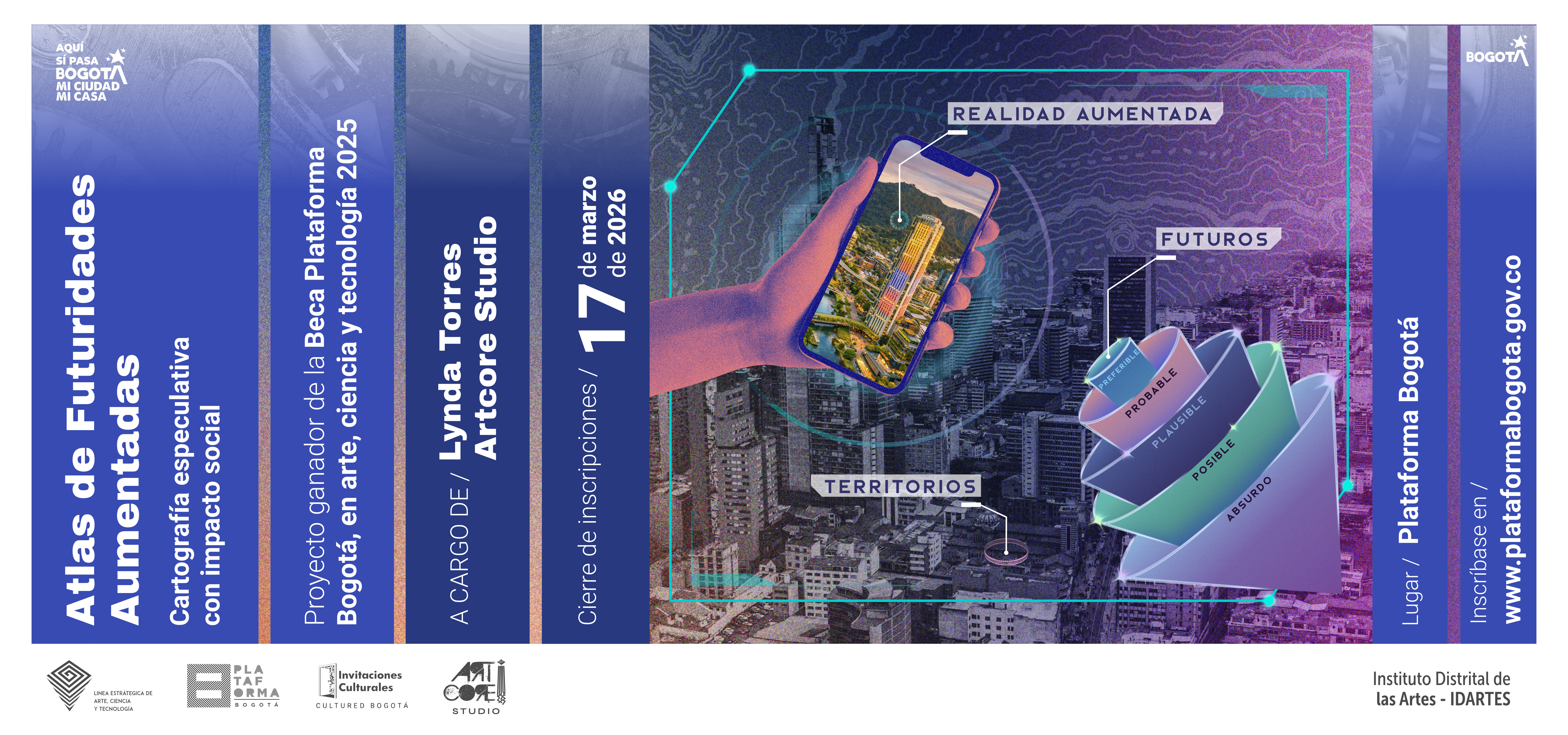 Se otorgarán quince (15) cupos, uno por participante, para que hagan parte del Laboratorio Atlas de Futuridades Aumentadas: Cartografía Especulativa con Impacto Social - 2026 - IDARTES